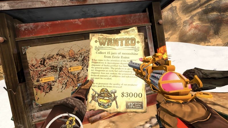 With everyone dressed in neo-western garb, bottles of whiskey laying around everywhere and plenty of wanted posters plastered around the place which you can take on for additional rewards (more on that in a bit), Cave Digger 2: Dig Harder really does a great job of bringing that same dieselpunk game world depicted in the SteamWorld Dig games kicking and screaming into VR – and I’m absolutely here for it. The comparisons with SteamWorld Dig extend beyond merely just the aesthetic too.