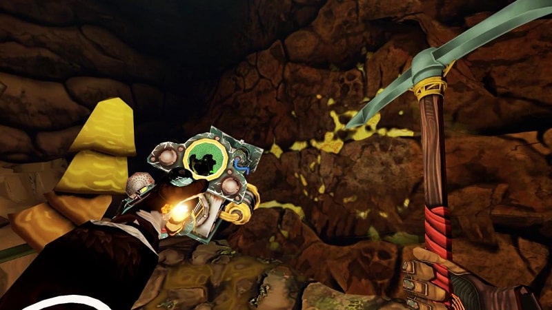 Cave Digger 2: Dig Harder PSVR2 Review. If I wanted to be really reductive, Cave Digger 2: Dig Harder could be described as ‘merely’ some sort of odd manifestation of the SteamWorld Dig games with VR bits tacked on the end of it. Though such a comparison is both tantalising and not entirely without merit, what VRKiwi has wrought here is also something else very different that takes full advantage of the VR platform while also staying true to those aforementioned influences. Put simply, Cave Digger 2: Dig Harder has you delving into procedurally generated mines, caves and long forgotten ruins as you chip away at geodes with your trusty pickaxe in the search of ore and treasure, blasting away at all manner of monsters, solving puzzles and attempting to escape with your stash (and more importantly your life) intact.