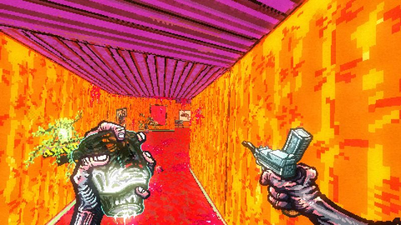 The absolutely first thing about Post Void that will surprise you is the art style, mimicking something of a Doom-on-drugs fever dream. What surprised me about this visual style is how helpful it is in this environment.